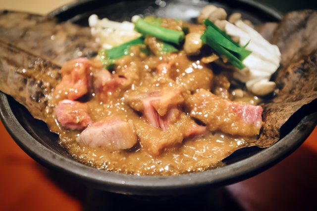 Hoba miso was originally a local dish of magnolia leaves grilled with green onions, ginger and miso paste. Nowadays, hoba miso that is made with Gifu local produce like Hida beef, fish, and vegetables is also enjoyed. The characteristics of Hoba miso are the fragrant smell of magnolia leaves together with condiments and seasonings that adds to the miso’s depth of flavours. The dish’s appearance is also quite unusual which adds to the experience, as you “eat” with your eyes.