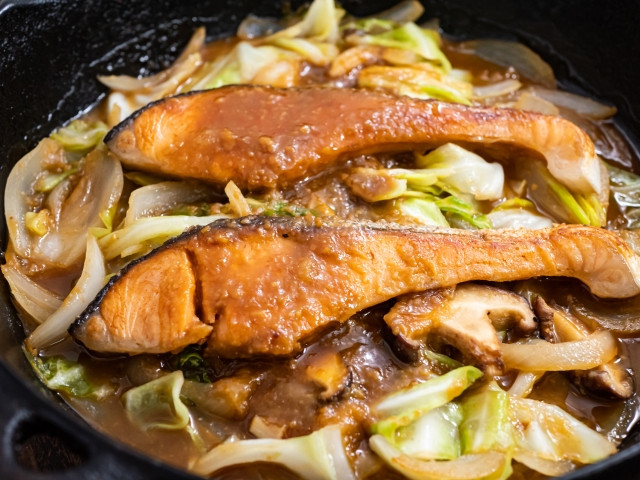 Ishikari Nabe is a hot pot dish of salmon meat and bones (bones, gills, etc.) and vegetables simmered in miso broth. A dish founded in former Ishikari Town (now Ishikari City), where salmon fishing thrives, it is now popular as a home-cooked dish. With miso as its base, butter is sometimes added for a richer flavour, or chilli peppers for a little spice.