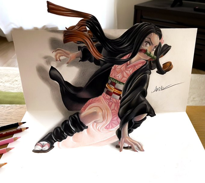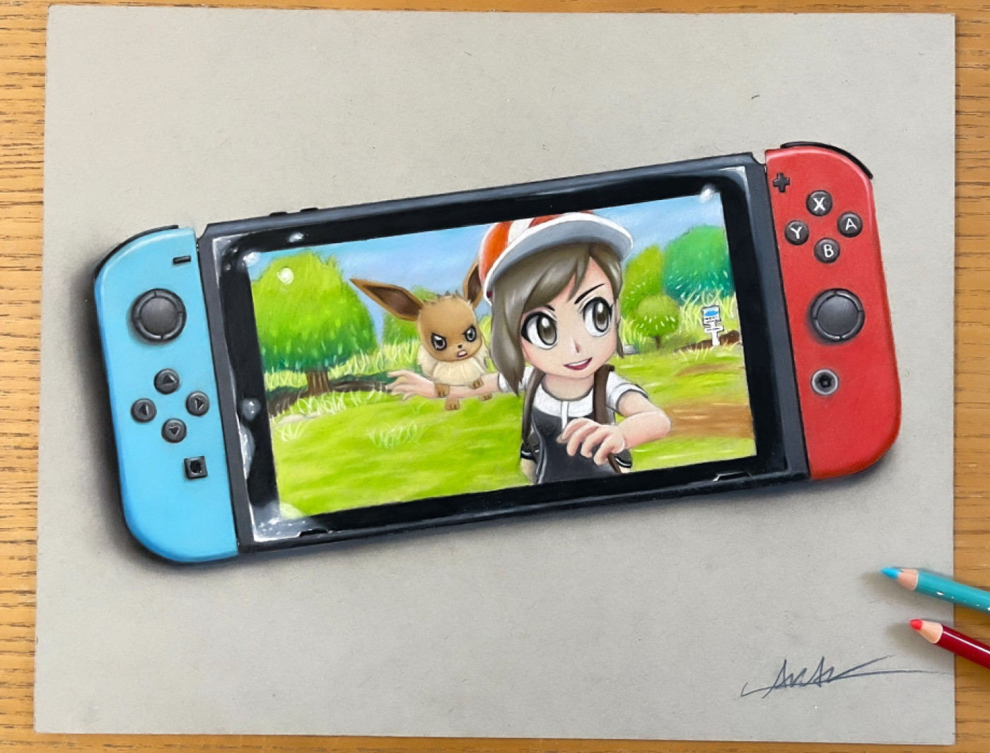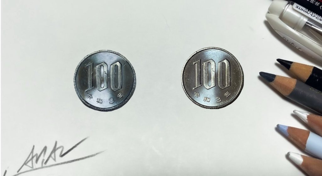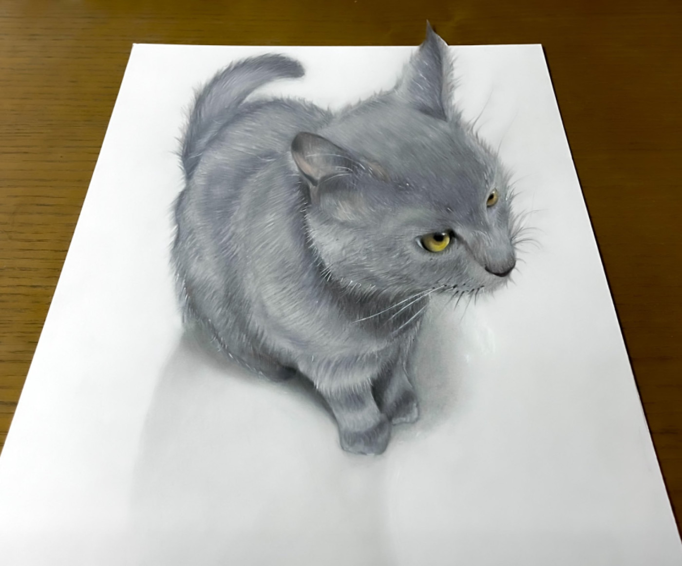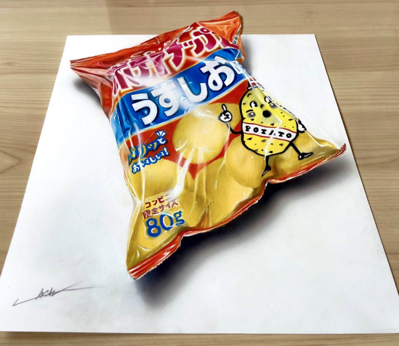 They post their drawings on Twitter with the phrase “本物に見えたら嬉しい...!!!” which means “I’d be thrilled if you think it looks real.” And they definitely look real, so much that the videos often accompanying the posts where they roll colored pencils over the drawing are quite jarring. It’s like an optical illusion in a sense.