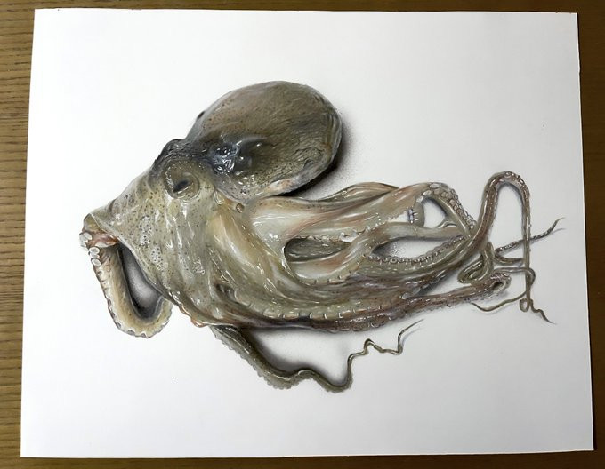 The fact they were able to capture the shiny and wet aspect of an octopus makes it look like it’s right there on the table. Just incredible.