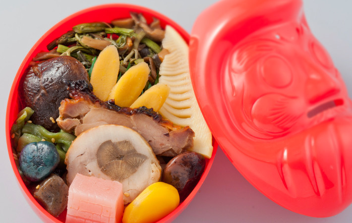 This Ekiben is served in a Daruma-shaped bento box. Takasaki in Gunma Prefecture is famous for its Daruma dolls. Daruma dolls are considered lucky objects. They are modelled after Bodhidharma who is the founder of Zen Buddhism. This Ekiben features Gunma’s local produce including rice, local vegetables, beans, konnyaku, and chicken. After finishing your meal, the Daruma plastic container can be reused as a coin box.