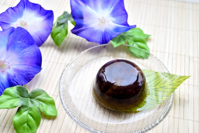 Mizu-Yokan (水羊羹) is a type of Yokan made by hardening red bean paste using agar. Mizu-Yokan has a higher water content than regular Yokan and is characterised by its light and soft jelly texture. It is said to have originated in the Edo period as a dessert added to Osechi. Nowadays, it has become popular as a cooling Wagashi for hot summers.
