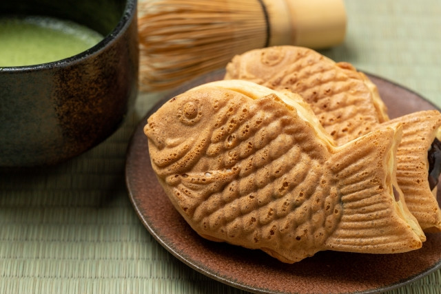 Taiyaki is a type of Wagashi that is shaped like a fish, specifically a sea bream called Tai (鯛) in Japanese, thus the name (Tai)yaki. Dough is used to form the fish and inside is filled with red bean paste. In addition to red bean paste, other taiyaki flavours are cream, chocolate, or other Western ingredients. Taiyaki can also come in different textures, from crispy to chewy. Freshly made hot Taiyaki are the perfect sweet treat for cold winter months. It is said that Taiyaki originated from another Wagashi called Imagawayaki (今川焼き), which was made into the shape of a sea bream to bring good luck and to increase sales.