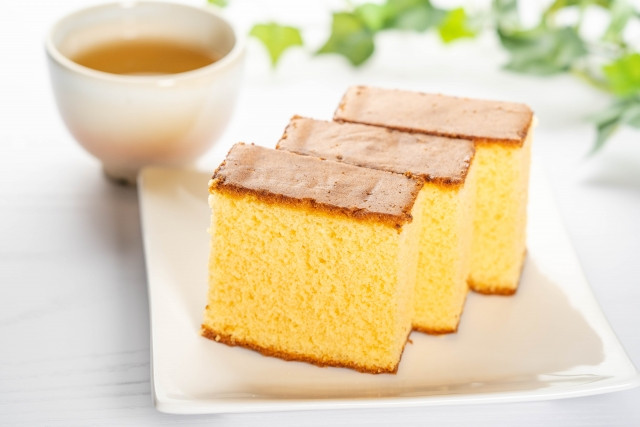 Despite its Western appearance, Castella is a Wagashi. A dough formed from a combination of eggs, flour and sugar is baked in an oven to make Castella. It was introduced to Japan from Portugal during the Warring States period and developed into a unique Japanese confectionery. The name Castella comes from the Portuguese reading of “The Kingdom of Castile”, and means that it is a confection made there. Castella is characterised by its fluffy texture made possible with lots of eggs, and the gentle sweetness from the sugar.