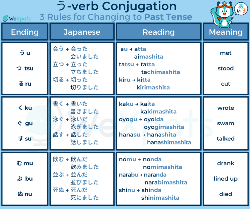 To that end, Japanese verbs can be categorised into 3 groups that follow different conjugation rules: