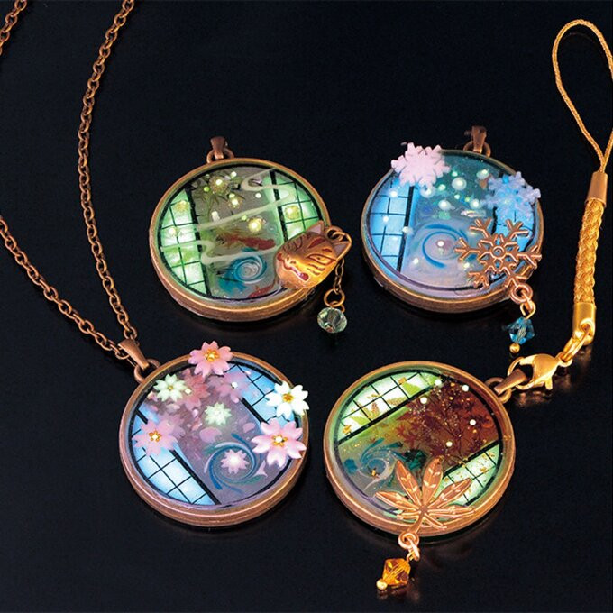 Mito's work can be used in necklaces, keychains, and more! Seasons, traditional Japanese landscapes and animals are often themes in her work.