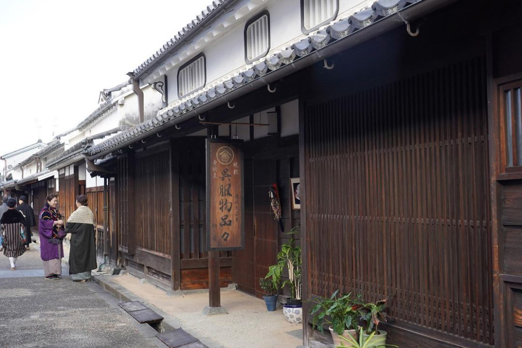 The traditional townscape where Miyo goes shopping, first with Kiyoka, and also with Yurie.