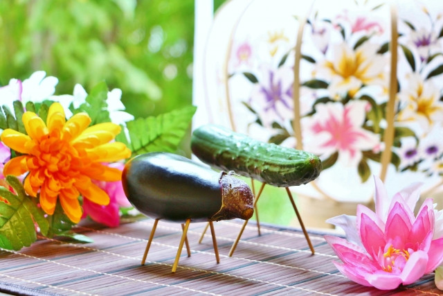 The cucumber horse with its slim body is believed to be fast, and so is placed during Mukaebi so that the spirits can quickly come home. Whereas, the eggplant cow with its thick body allows ancestor spirits to bring back many of the offerings and so is best displayed during Okuribi.