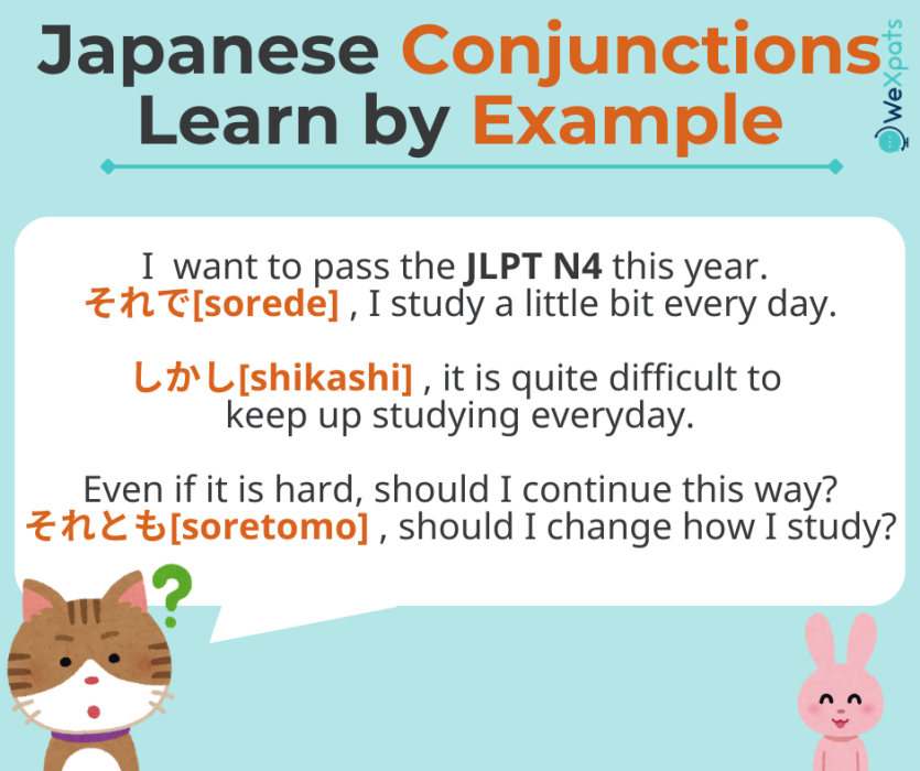 Japanese Conjunctions are Easy to Study with Example Sentences