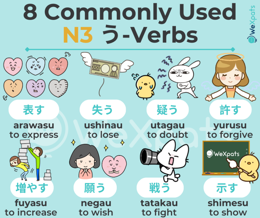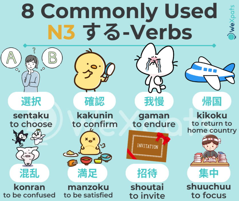 At the N3 level, you need to learn the meaning and conjugation of different types of verbs. Understand the basic forms and pay attention to conjugations.