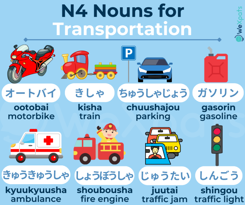 To pass the JLPT exams, it is extremely important to learn a large number of nouns to be able to understand the questions. At the JLPT N4 level, you will need to remember hundreds of nouns as well. In this part, we introduce nouns related to places, directions, transportation, countries, and events & incidents that will be useful when travelling in Japan as well.