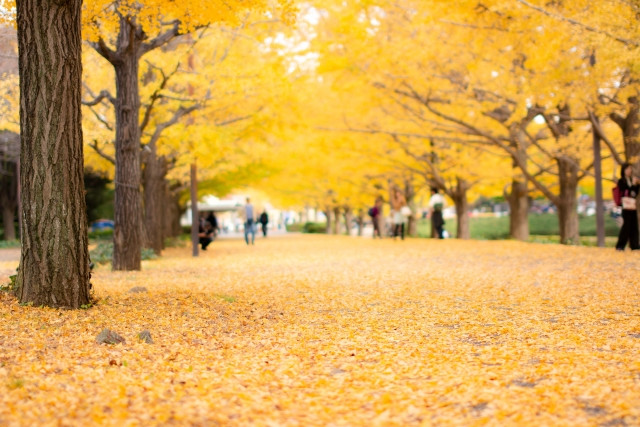 Though the stark redness of momiji (maple leaves) are the iconic image of autumn leaves, we shouldn’t forget its yellow just as strikingly beautiful counterpart ichou (ginkgo leaves). These two are the basis of autumn-leaf viewing, the ultimate autumn activity in Japan.