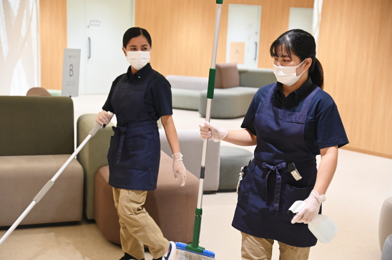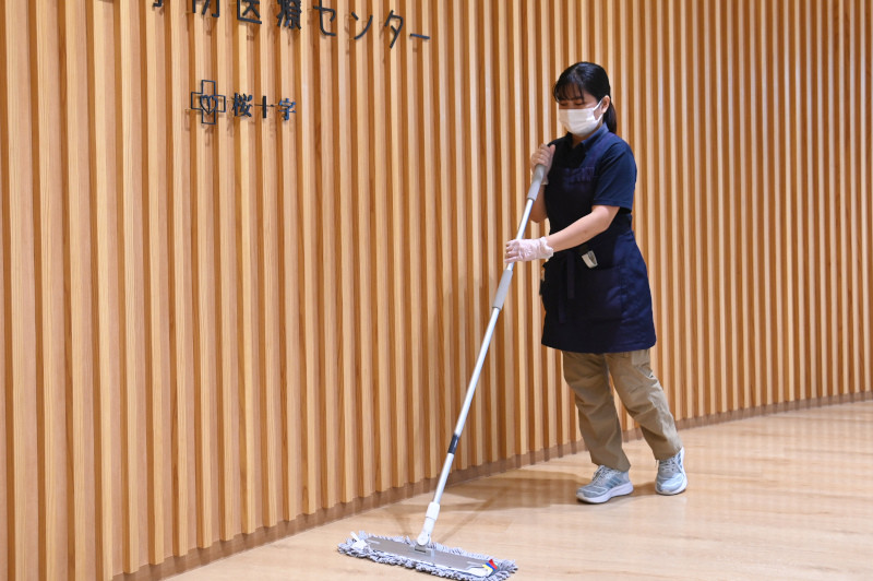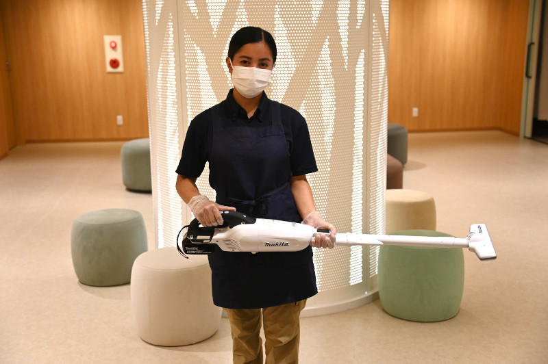 We work as cleaning staff at Sakurajyuji Hospital (Sakura=Cherry blossom, jyuji=Cross). After working as a technical intern trainee for 3 years from 2019, I began to work again under the Specified Skilled Worker Program.