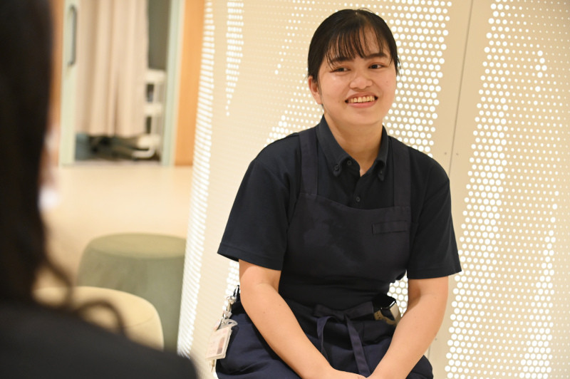 Our hospital is very large, so depending on the day, we’re put in charge of several areas. I’m used to it now, but I was really nervous at first to enter rooms where patients are staying. I was worried about “What if I break something!” because there are important machines in the rooms.