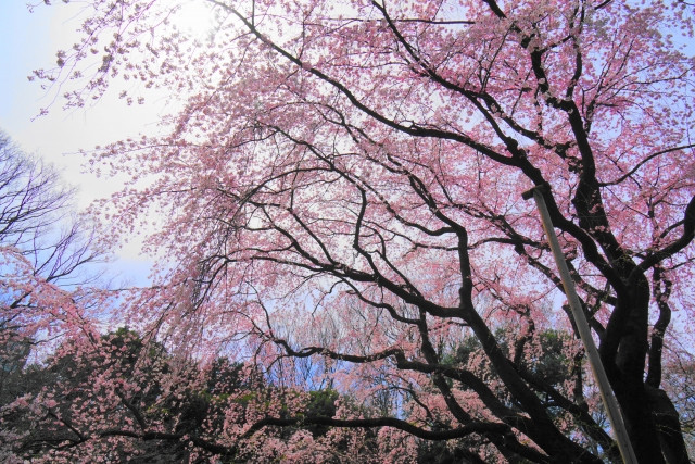 Maruyama Park (円山公園) in Higashiyama Ward, Kyoto Prefecture is the most popular Hanami spot in Kyoto, especially for Hanami picnics in early April. During the evening, its centrepiece Shidarezakura (weeping cherry blossom tree) is illuminated. Maruyama Park is located right behind Yasaka Shrine (八坂神社) and near the Gion area, so you can sightsee after enjoying the cherry blossoms.