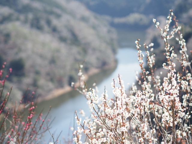 Tsukigase Plum Grove (月ヶ瀬梅林, Tsukigase Bairin) in Nara City, Nara Prefecture is the first plum blossom viewing spot designated by the Japanese government as Nara’s Three Great Plum Groves (奈良三大梅林) - the others are Anou Plum Grove (Gojo) and Hirohashi Plum Valley (Shimoichi). There are over 10 thousand plum trees at Tsukigase Plum Grove, many of them growing along the slopes of a deep valley where the Nabari River flows.
