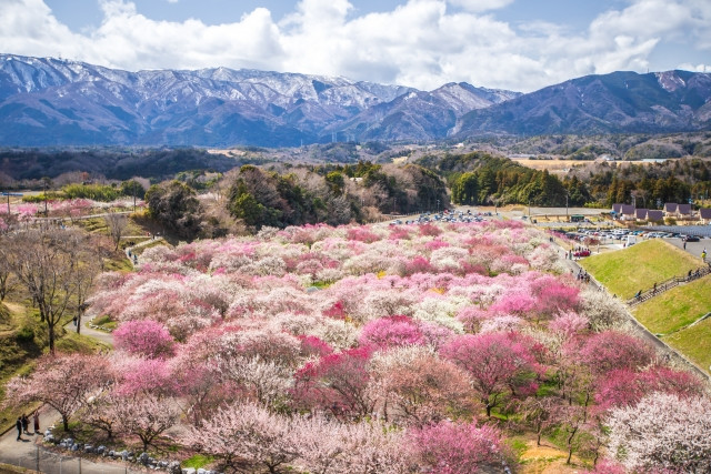 Akima Plum Grove (秋間梅林, Akima Bairin) in Annaka City, Gunma Prefecture is a hillside area with over 35 thousand ume trees. Akima Plum Grove, Haruna Plum Grove (榛名梅林, Haruna Bairin) and Misato Plum Grove are collectively known as Gunma’s Three Great Plum Groves (ぐんま三大梅林).