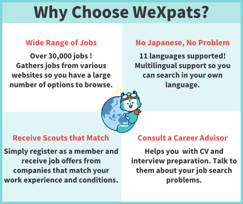 WeXpats Agent is a career support service that specialises in employment for foreign nationals living in Japan.