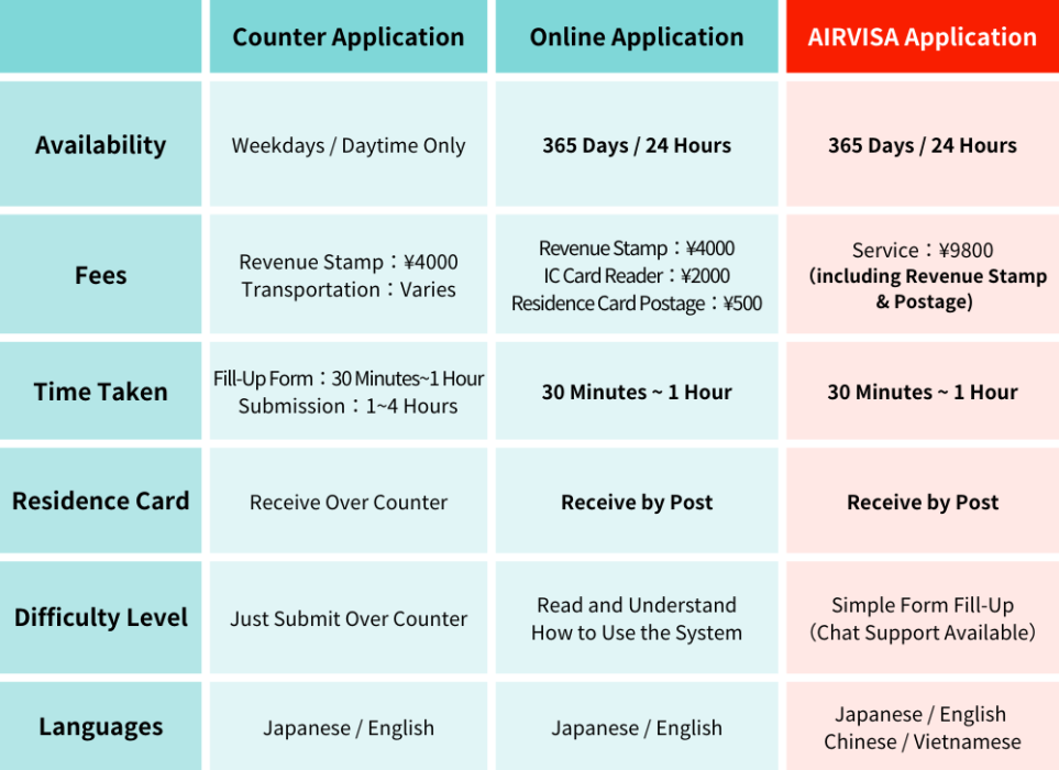 As of September 2024, AIRVISA only supports visa renewal applications for "Engineer/Specialist in Humanities/International Services". However, there are plans to support the "Family Stay" status of residence in future. If you are interested, please register your email address on the official website and wait for updates.