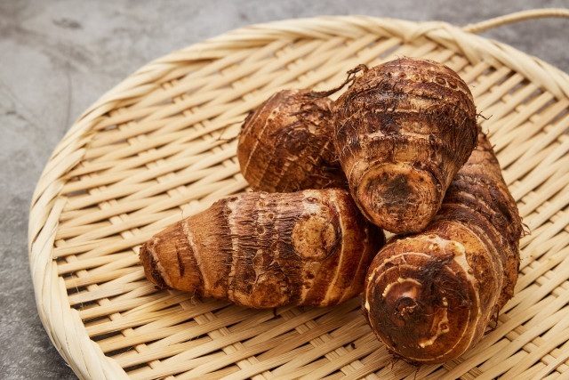Satoimo, or taro, is a starchy root vegetable with a slightly slimy texture when cooked, similar to okra. It has a mild, earthy flavour and is often used in simmered dishes (nimono) or added to soups and stews. Satoimo is valued not just for its taste but also for its nutritional benefits, as it is high in fibre and vitamins.