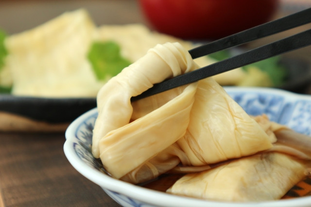 The nutritious yuba is made when you boil gojiru (soy milk), or soybeans that is also used to prepare tofu—the film-type substance formed on the surface when the gojiru is heated is the yuba. If you like tofu, you will enjoy the delicious healthy yuba for syre, especially when it is served fresh and raw because of its distinctive flavor and soft texture. Some restaurants serve yuba as toppings to a rice bowl with special Japanese sauce.