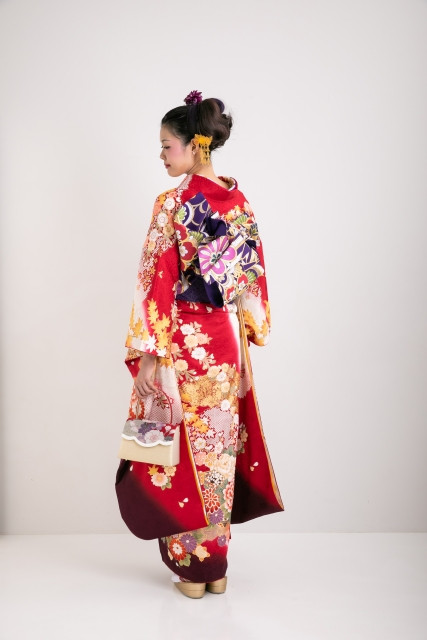 Furisode is a type of kimono worn by unmarried young women. It comes in three different sizes or small, medium and large, each with a different length. The key point of furisode is their long sleeves.The large furisode has a sleeve length of 114cm and is the most formal amongst the three furisode. The medium furisode has a 100cm long sleeve and is worn to coming-of-age ceremonies, receptions, and parties. The small furisode has the shortest sleeve at 85cm length and are usually worn to graduation ceremonies.