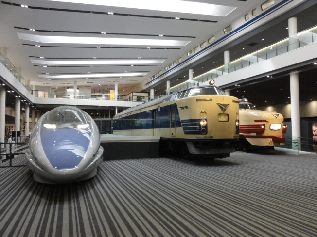 The Main Hall, where some notable trains on display like the first limited express EMU train in the world. The 500-series (Guinness World Record holder Shinkansen) and Japan National Railways' first diesel railcar and others are housed where visitors can view, touch, and even experience how trains work.