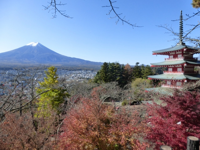 One of the best and most famous spots to view Mount Fuji. The park is well-known for its prime photographic location to capture shots of blooming cherry blossoms with Mount Fuji as a backdrop, or to capture the equally iconic 5 story pagoda with Mount Fuji as a background.