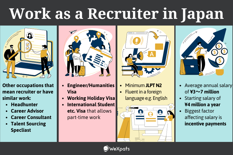 The main responsibility of a recruiter is to match job vacancies with human resources. There are several types of recruiters in Japan, such as:
