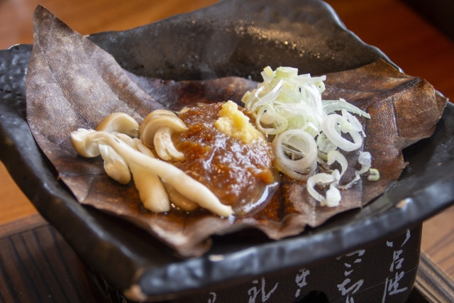 Hoba Miso, or Magnolia Leaf Miso, is a unique dish consisting of miso paste on a Hoba (magnolia leaf) cooked over an open fire. Typically mushrooms and spring onions are mixed in with the miso in addition to meat like Hida beef or salmon. It goes very well with rice. Aside from restaurants in Takayama City, you can also get it at ryokans in Gero Onsen.