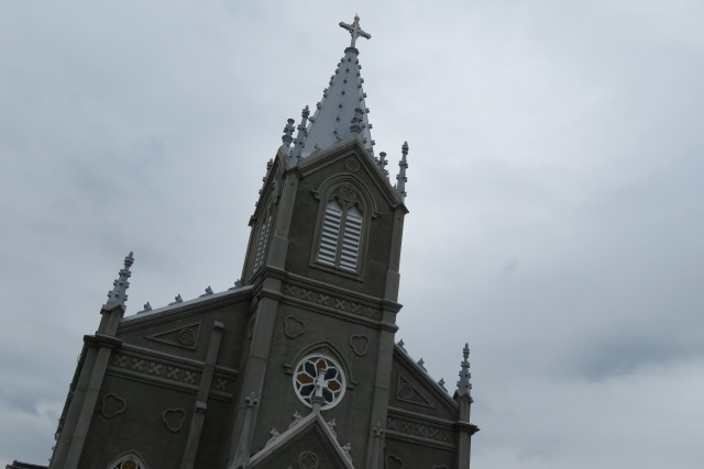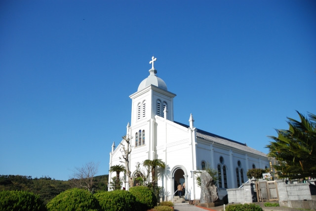 Oe Cathedral , or Oe Tenshudo 大江天主堂, is the first church to be built after the Christian ban was lifted in 1873. Located at the top of the hill, the beautiful pristine whiteness of the Cathedral is a sight to behold, especially on a clear blue sky day. The uphill path to the church is lined with green pastures and beautiful blossoms. The entire area looks like somewhere out of Europe.