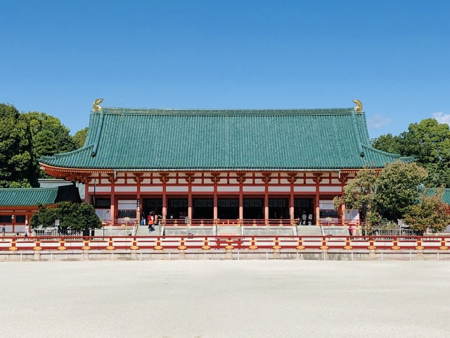 Heian Shrine with only 126 years of history is relatively new compared to other shrines. Highlights of the shrine include a vermilion torii, a traditional Japanese garden, and a replica of the old Imperial Palace. It is an impressive religious complex made even more so by its natural surroundings.