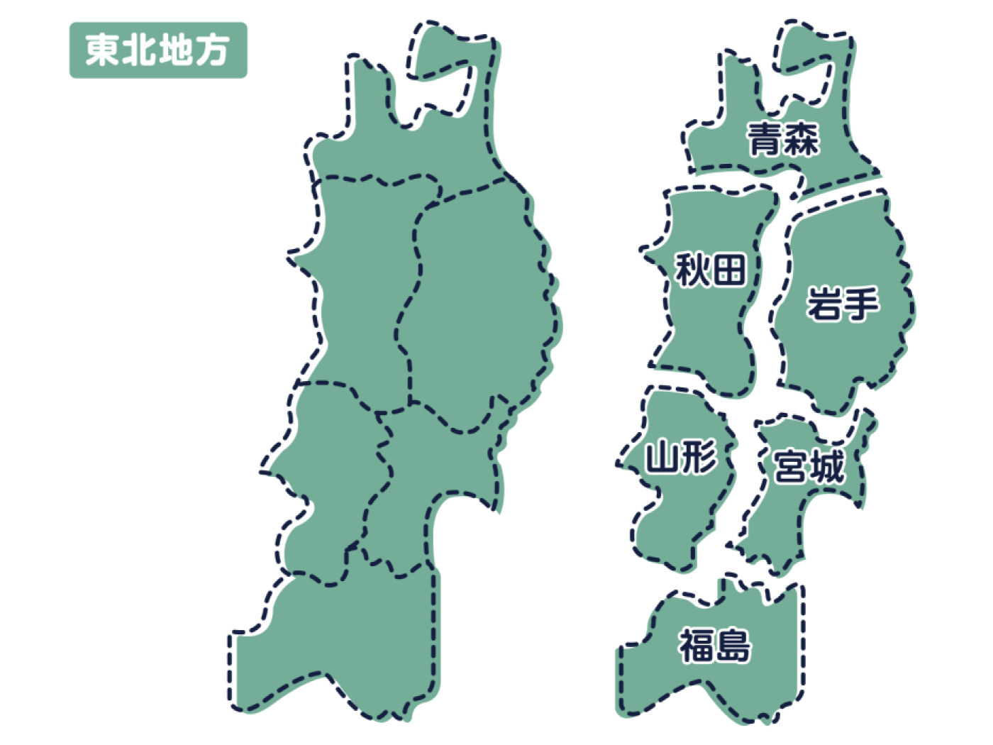 - La región de Tohoku consta de seis prefecturas.