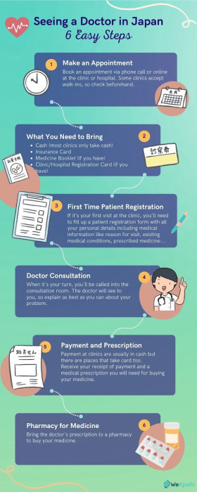 ¿Qué hacer si te enfermas en Japón? Guía paso a paso para obtener atención médica en Japón. Como seres humanos, inevitablemente nos enfermaremos, nos lesionaremos o nos sentiremos mal, tocaremos madera. En cuyo caso, requerirá un chequeo o tratamiento médico. En una situación que ya es preocupante, se siente muy mal estar en un país desconocido cuyo sistema de salud es tan diferente al suyo. Es por eso que hemos preparado este artículo para ayudarlo durante todo el proceso de ver a un médico en Japón. Recomendamos leer esto con anticipación, en caso de que alguna vez lo necesite.