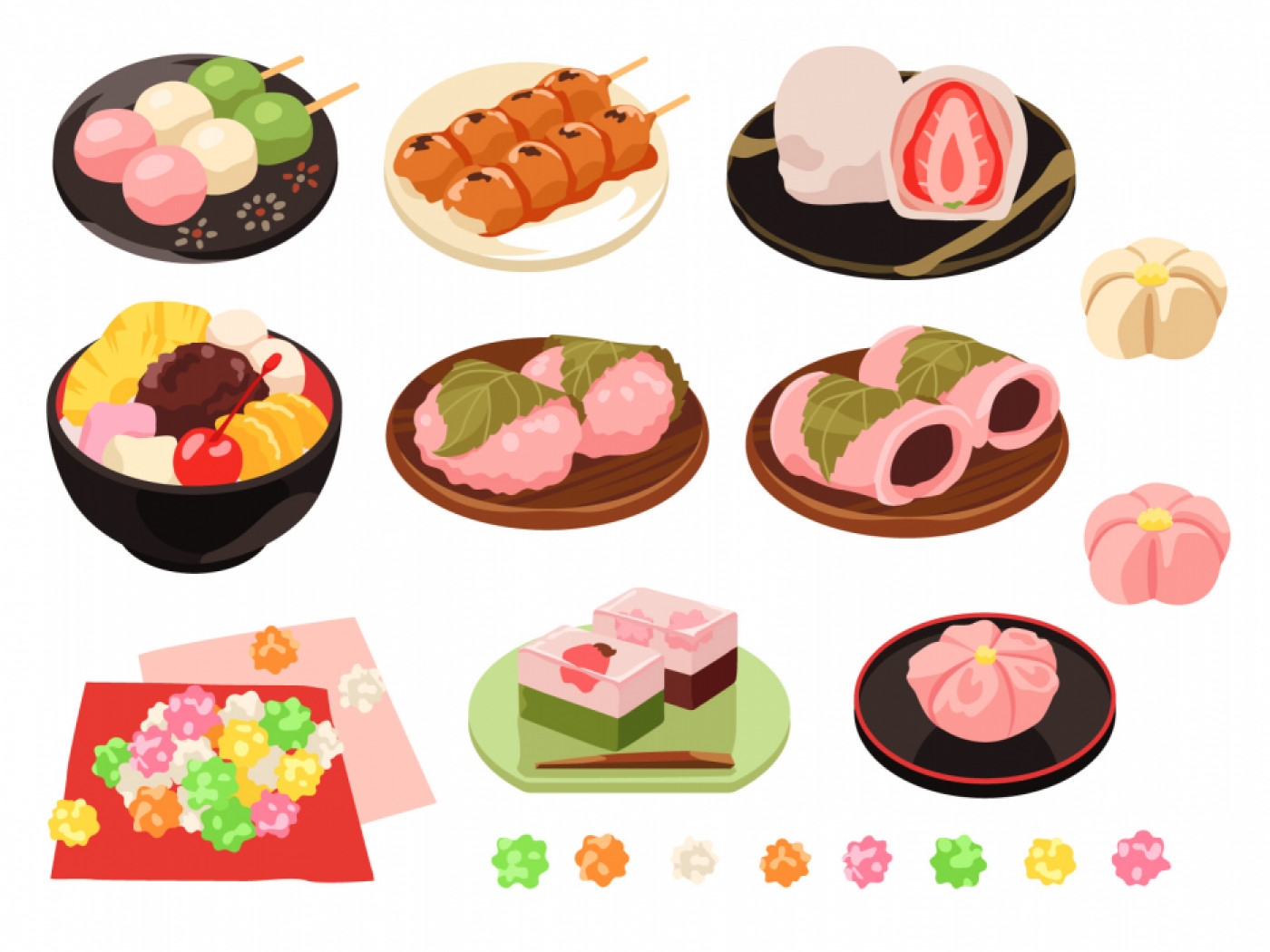 Hay wagashi que son representativos de las estaciones en Japón , así como habituales para ciertos eventos y celebraciones , como: