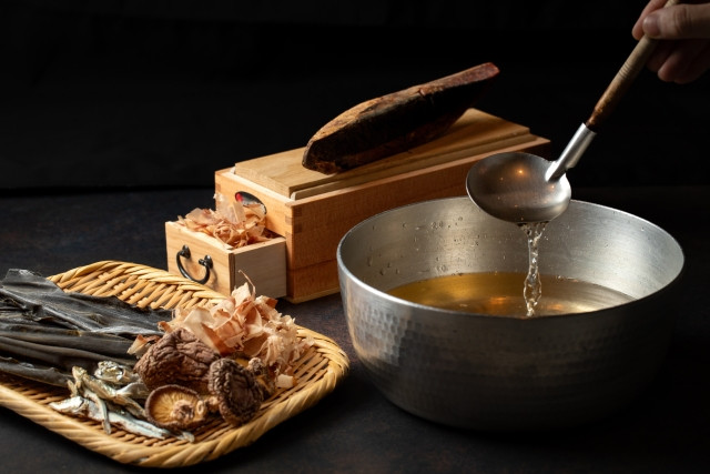 El secreto de la delicia de la comida tradicional japonesa es el dashi (出汁 - caldo de sopa) . Dashi se usa como condimento base en washoku hecho hirviendo mariscos y champiñones. El caldo de la sopa agrega combinaciones audaces de sabores a un plato, tan suficiente que se requiere un mínimo o ningún condimento adicional. Por lo tanto, una característica del washoku es que muchos platos se sazonan con relativa ligereza en comparación con la cocina internacional.