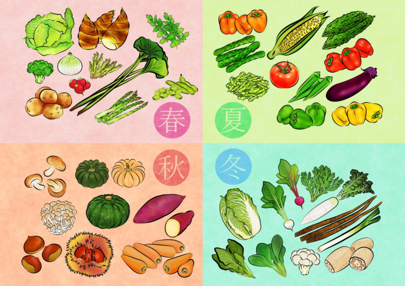 Los ingredientes de temporada son indispensables a la hora de preparar comida tradicional japonesa. Hay brotes de bambú y repollo en primavera, pepinos y tomates en verano, paparda y castañas en otoño, y rábanos y jurel en invierno.