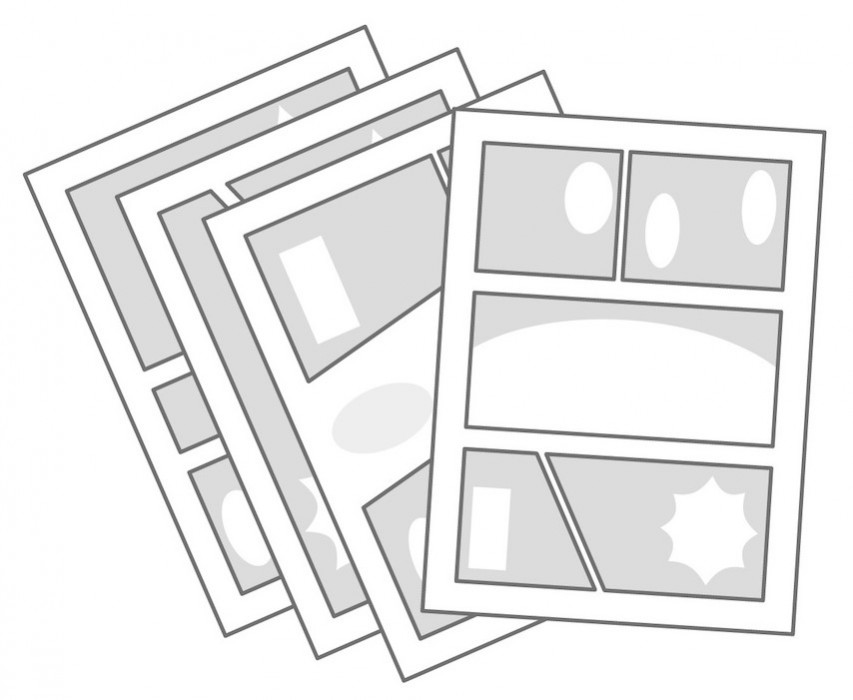 Uso flexible de viñetas y páginas para ilustrar escenas clave o paisajes dramáticos. El promedio de viñetas por página es de 6 a 8. Sin embargo, no es inaudito un solo viñeta de 2 páginas para una imagen generalizada, ni 2 o 3 viñetas para una sola página.