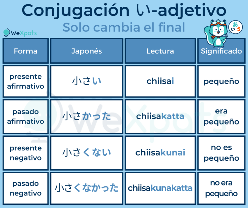 Como la mayoría de las personas estudiaron los adjetivos い y な al comenzar a aprender japonés, solo recapitularemos brevemente sobre ellos.
