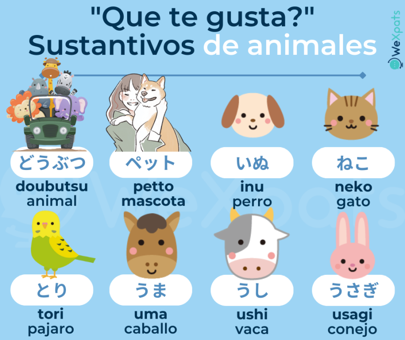 Vocabulario muy limitado para animales en el nivel N5. En su mayoría, mascotas comunes y ganado para ayudarlo a presentar su animal favorito o cualquier mascota que tenga.