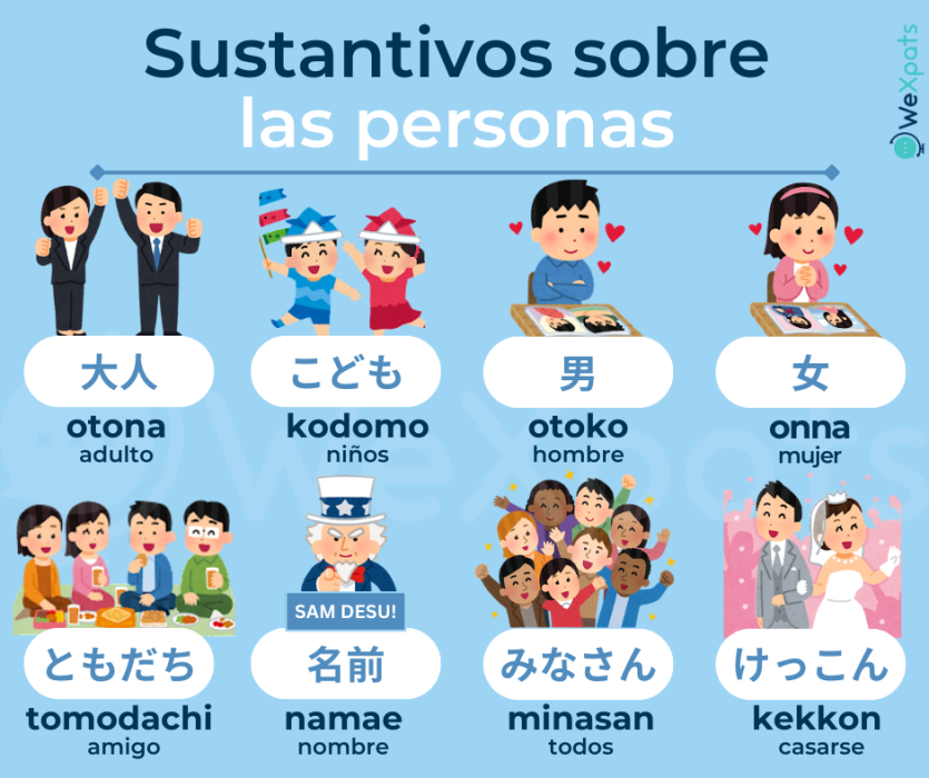 Comenzaremos con 45 sustantivos de nivel N5 sobre miembros de la familia y otras personas que facilitan el japonés.