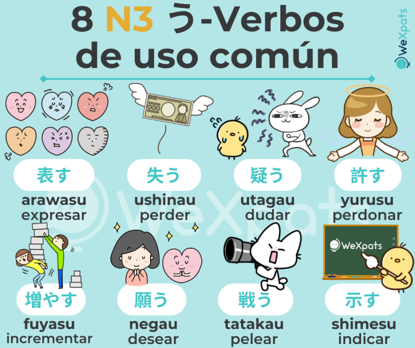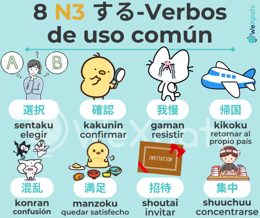 En el nivel N3, necesitas aprender el significado y la conjugación de diferentes tipos de verbos. Comprender las formas básicas y prestar atención a las conjugaciones.