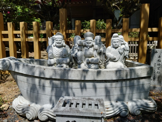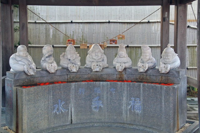 Se dice que durante los tres primeros días de cada año, las siete divinidades se embarcan desde los cielos en un velero llamado Takarabune con tesoros del folclore japonés y se dirigen hacia los puertos humanos