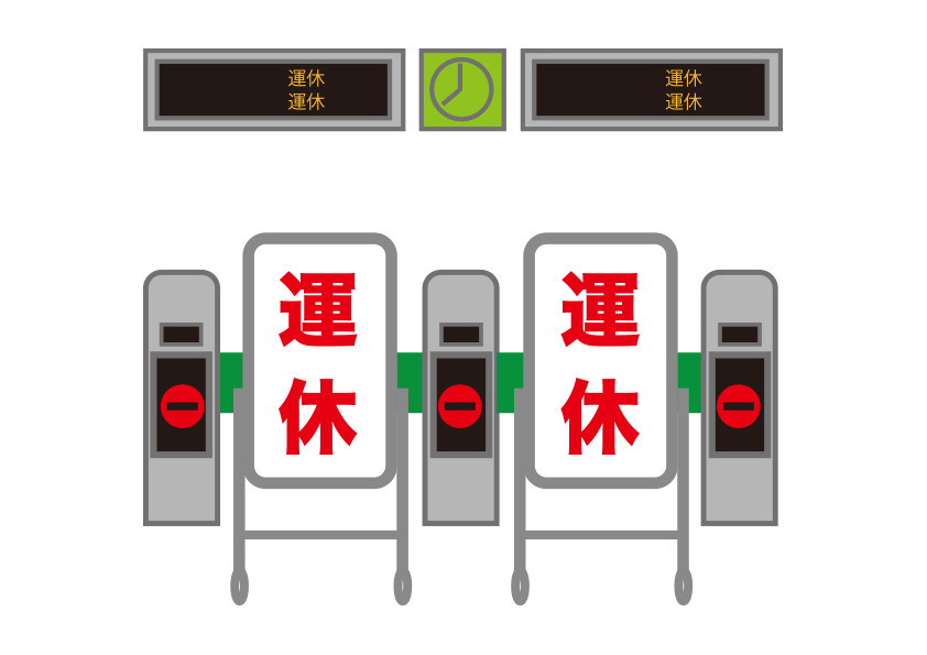 運休 unkyuu, 運転見合わせ unten miawase, 運行見合わせ unko miawase significa suspensión del tren