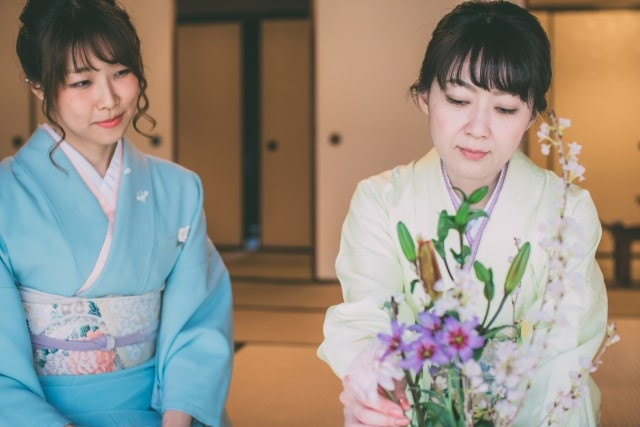 Establecido en el período Muromachi, el arreglo floral es una cultura japonesa que expresa la belleza y el cambio de las cuatro estaciones mediante el arreglo de flores. El arreglo floral se caracteriza por la idea de que el espacio entre las flores es importante y por el uso de hojas con partes marchitas u hojas comidas por insectos para representar cambios en la vida.