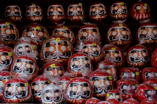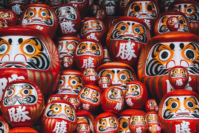 Las figuras de Daruma están pintadas de rojo para protección contra los espíritus malignos