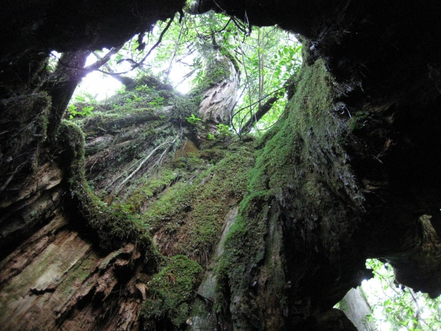 Algunos árboles de siglos han quedado con forma de cueva y este tipo de formaciones son referidas como lugares de refugio para los seres del bosque y los ciervos, tal como ocurre en la película