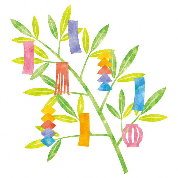 Un árbol de bambú adornado con muchas tiras de papel de colores es una de las imágenes clásicas de Tanabata. Estas tiras de papel se llaman Tanzaku 短冊. Una costumbre tradicional de Tanabata es escribir tu deseo en un Tanzaku y colgarlo en un árbol de bambú para pedir un deseo.