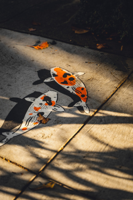 Los koi (鯉) o carpas de colores, nishikigoi (錦鯉) en japonés, son coloridos peces ornamentales que se originaron en Japón y son un símbolo común de la cultura japonesa y china. A menudo se representa en obras de arte, tatuajes, ropa e incluso se usa para paisajismo.