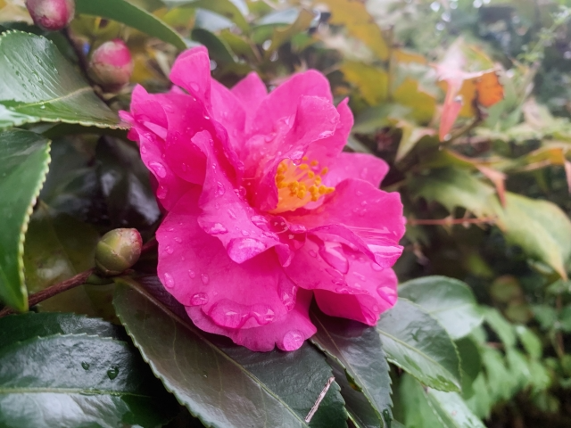 - 山茶花時雨 (ささんか しぐれ,Sasanka shigure): Llueve durante la floración de sasanka